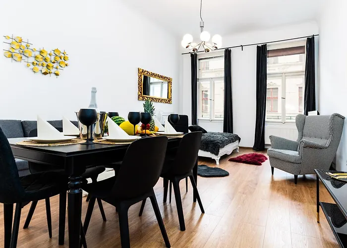 Black Diamond Suite ferielejlighed giver direkte adgang til Wenzelspladsen og har udsigt over haven. Denne 103 m^2 ferielejlighed ligger 5 minutters gåafstand fra Narodni metrostation.